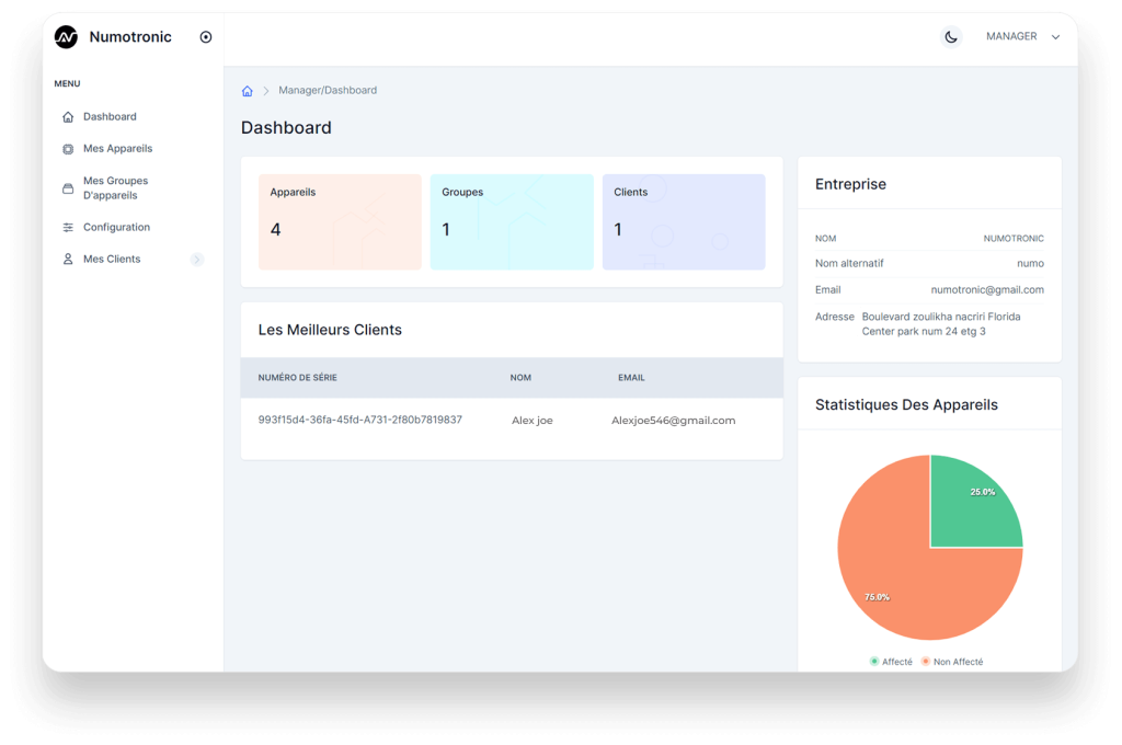 يتم تعيين جميع المنتجات التي تم شراؤها مباشرة من numotronic تلقائيًا إلى عملك.